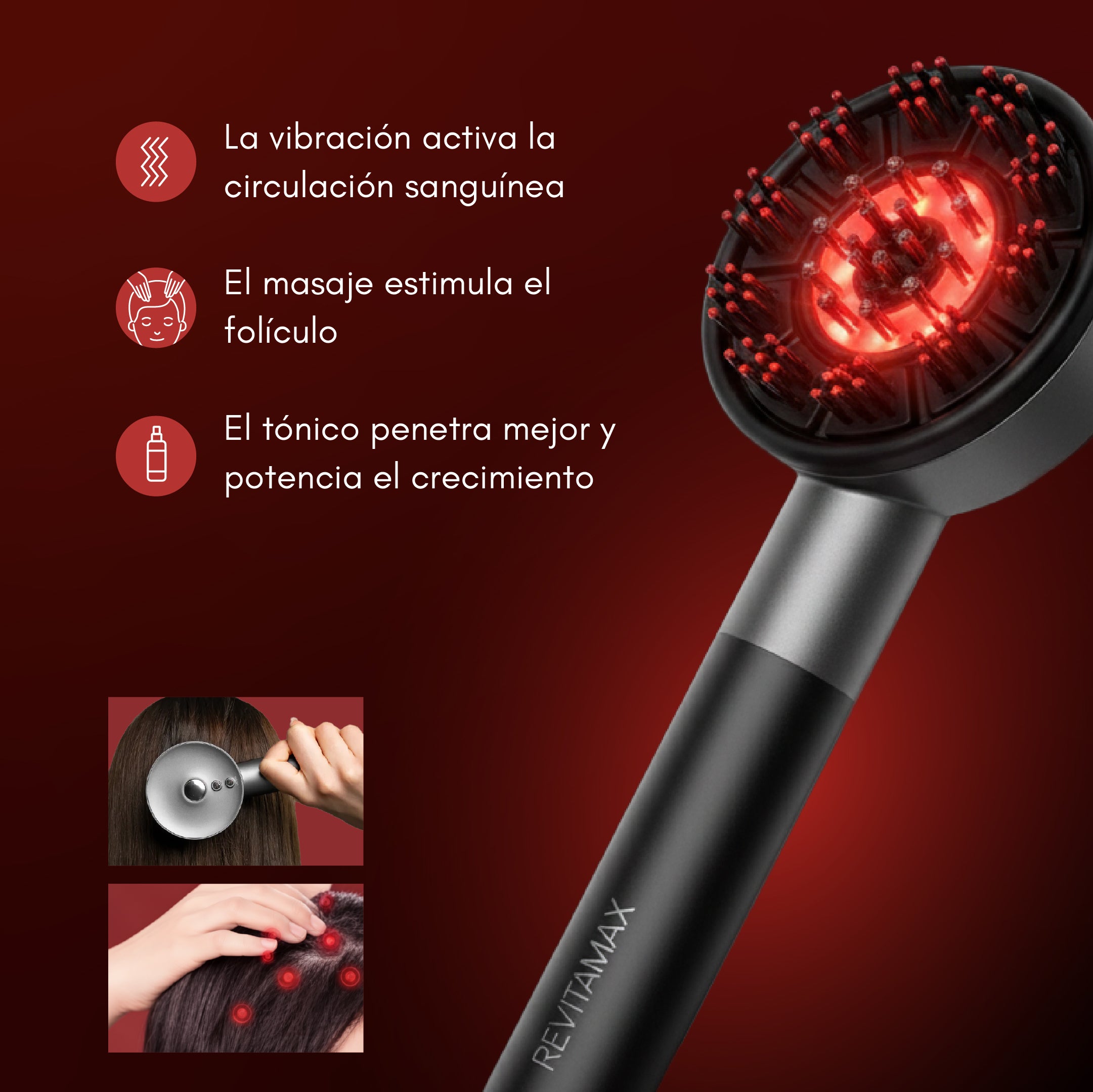su sistema de masaje especialmente diseñado incrementa la absorción del tónico antícaida que viene incluido. Con Revitamax y su tónico incluido, obtendrás un cabello más fuerte, denso y grueso en menos de 3 meses.